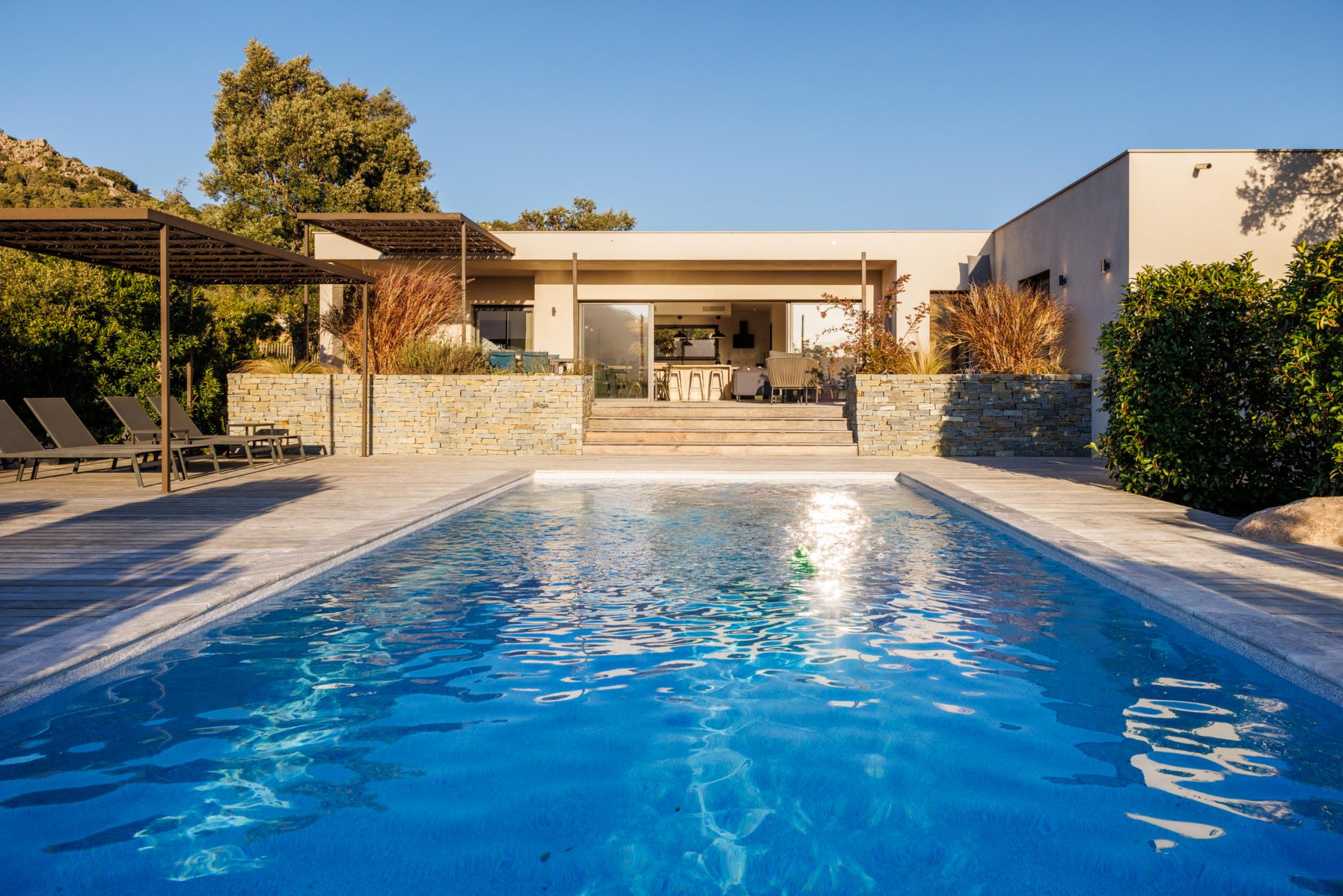 Découvrez cette très jolie maison de plain-pied à louer à Porto Vecchiaccio, sur les hauteurs de St Cyprien, un véritable cocon de bien-être au cœur du maquis.